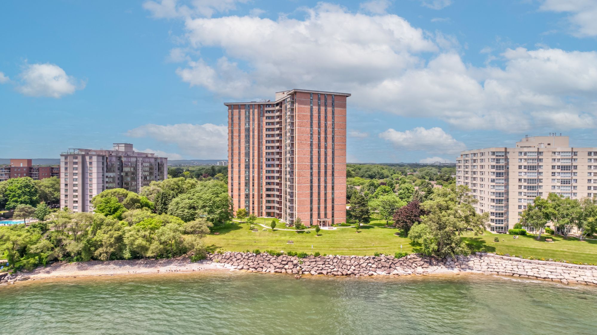 Welcome to Admiral's Walk, a Waterfront condo in South East Burlington. This condo is a well-run mature building offering residents lush gardens, beautiful Lake Views and an abundance of amenities. Suite 708 features over 1400 sq ft of living space with spectacular Lake Views from all windows as well as the balcony. Kitchen features new granite countertops, beautiful backsplash, stainless steel appliances and updated cabinet doors with lots of storage and counter space as well as an eat-in area for a small table and chairs. Brand new elegant hardwood flooring throughout. The spacious living room with a separate dining room area is perfect for entertaining. The generous sized Master Bedroom includes an ensuite washroom and 2 double mirror closet doors. The second Bedroom features a custom closet/storage organizer and great for a second Bedroom, Family Room or Den. This unit also offers an oversized in-suite Storage Room, plenty of closet space throughout, with an additional separate Storage Locker downstairs. Windows and balcony doors were replaced in 2017. Washer/Dryer ready for simple hook up. This suite gets tons of morning sun. Enjoy the scenic views from every room as well as your balcony with a glass of wine or cup of tea. Building hallways and common areas were redone and updated in 2023. Building Amenities include: Heated Outdoor Pool, Party Room with a kitchen, dance floor, projector and large screens for TV nights, Games Room featuring a dart board, pool table and ping pong table, Sauna, Gym with new equipment, Workshop, Car Wash area and a BBQ area. The Active Social Committee plans regular events for owners. Great location just stroll to the parks and walking paths along the Lake. Short walk to the grocery store, coffee shop and pharmacy.